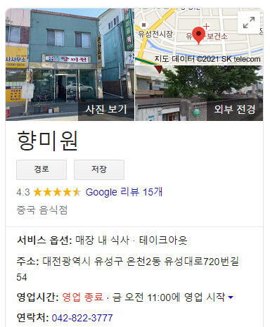 구글에서 아직 리뷰가 많지 않지만 평점이 4.3으로 높습니다. 순한 짜장면과 맛있는 고기튀김이 궁금하다면 한번 들러보는 것을 추천 드립니다.