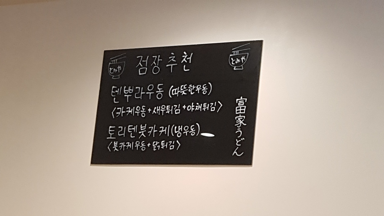 점장님 추천메뉴. 저는 냉우동인 토리텐붓카케를 선택하였습니다.