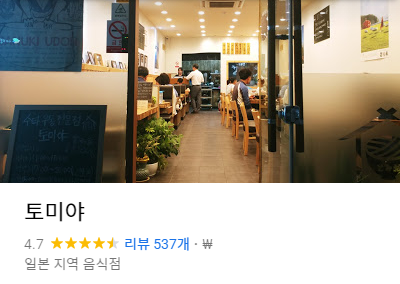 리뷰가 500개 중반 밖에 없다고 하더라도 평점이 4.7점은 정말 높은 점수입니다. 구글 리뷰를 참고해 보셔도 좋습니다. 우동을 좋아하시는 분들이라면 꼭 들러보세요.
