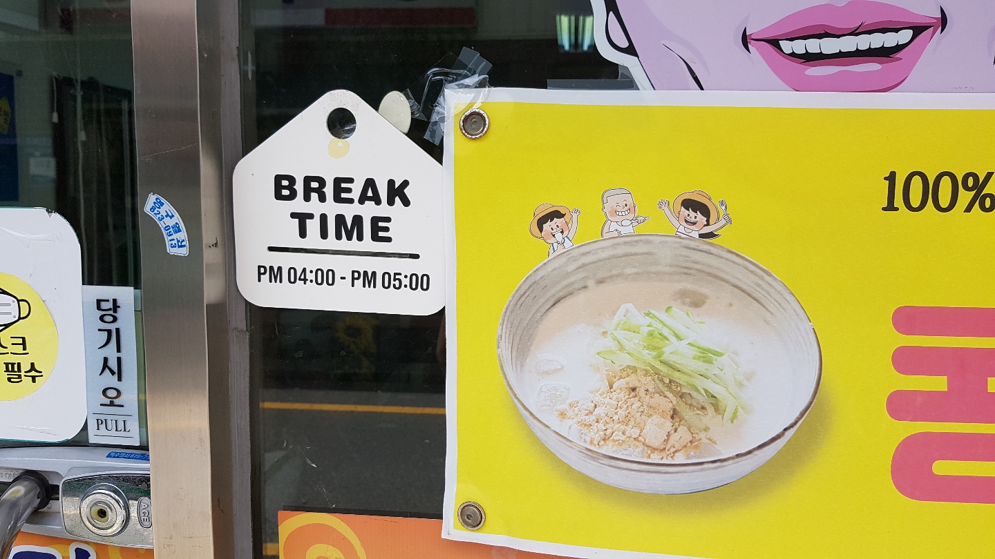 브레이크 타임이 4-5시라고 합니다. 콩국수 개시도 여름이어서 광고를 크게 하는 것 같습니다.