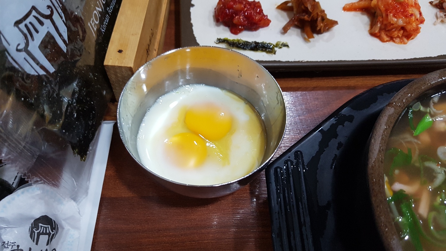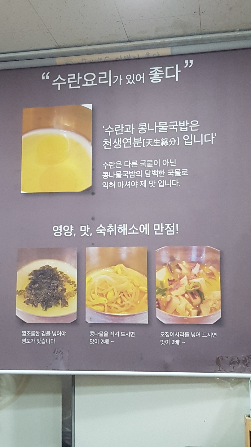 여기는 콩나물국밥에 별도로 수란이 나옵니다. 먹는 법은 위와 같습니다.