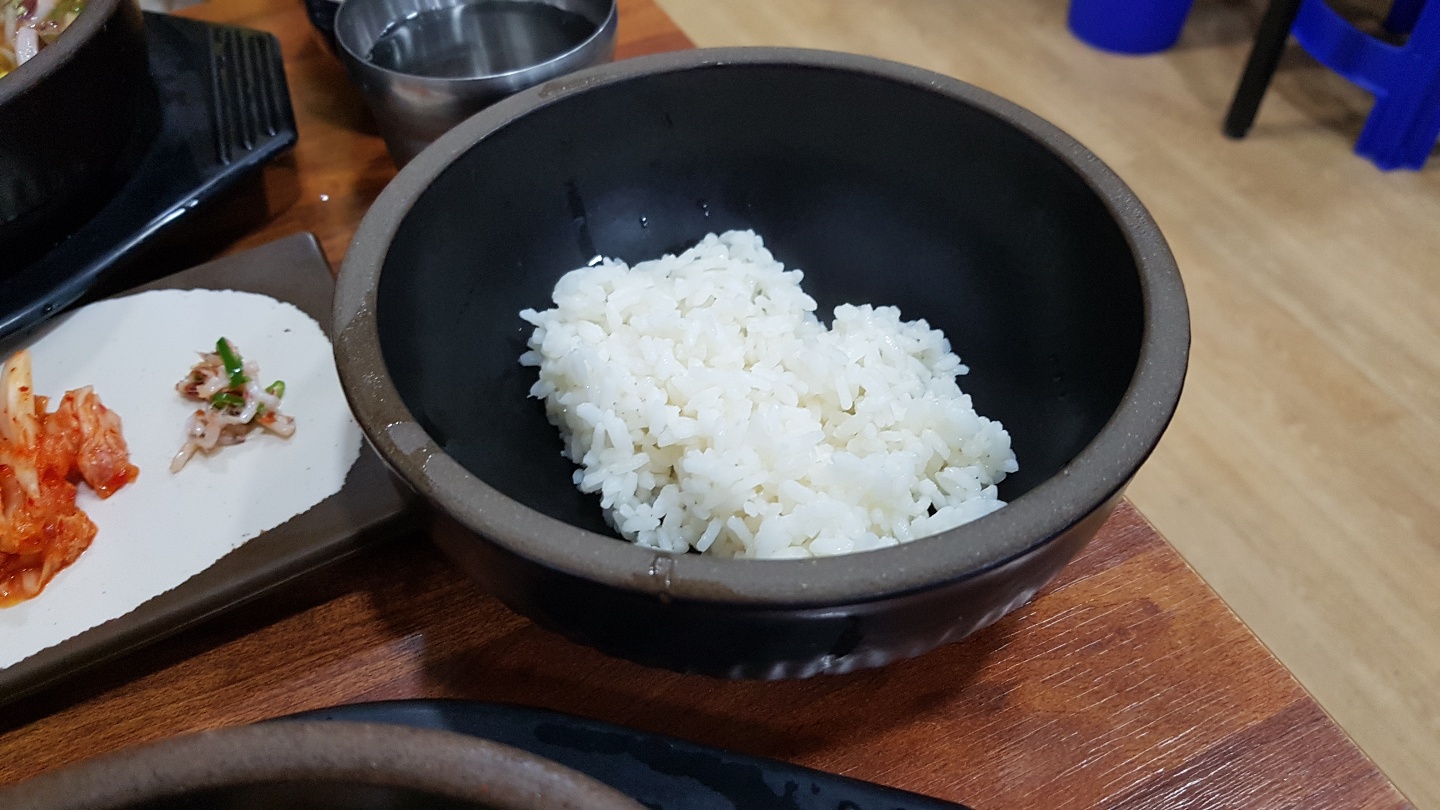 밥을 조금 더 줄 수 있냐고 여쭤보니 저렇게 담아서 더 주셨습니다. 따듯한 밥은 아닙니다.