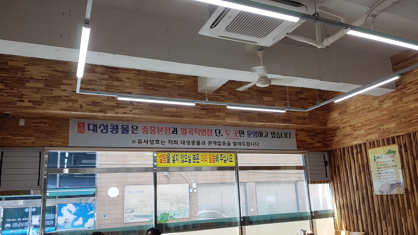 1974년부터 운영하였다는 대성콩물에 입장하니 젊으신 주인분이 맞이하여 주었습니다. 일곡직영점과 중흥본점 2곳만이 관련된 식당이라 하더라구요.