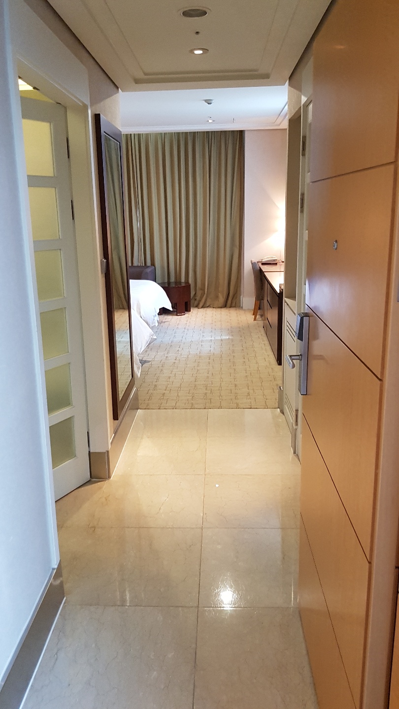 호텔 방 입구입니다. 좌측은 욕실인데 욕실이 정말 큽니다. 전면거울 투성이라 제가 사진을 더 찍지는 못했습니다.