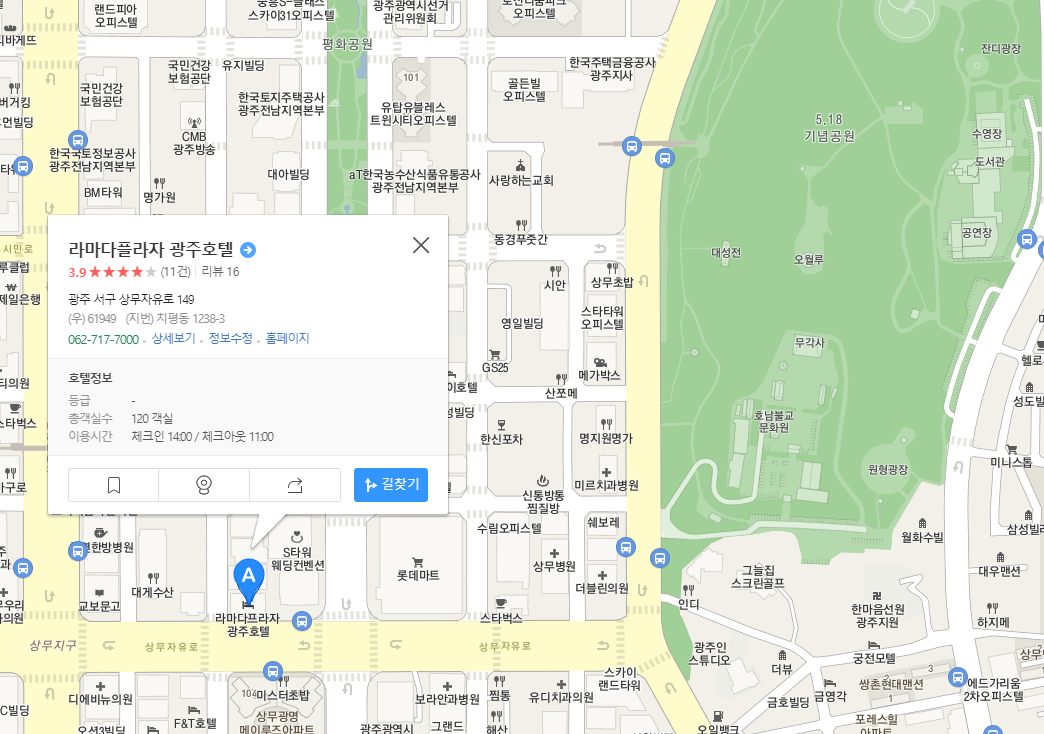 광주에서 1박을 하며 어딜 예약할까 고민하였다가 광주 도심 거의 중심부에 있는 라마다 호텔을 예약해 보았습니다.