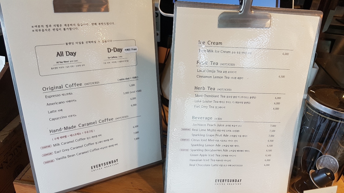 입구에 들어가서 메뉴를 주문해 봅니다. 저는 아메리카노와 이것 저것 몇 종류의 커피를 더 시켜 보았습니다.