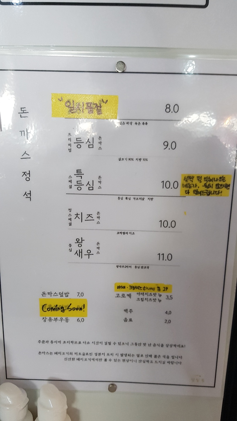 주문은 스페셜 특등심과 치즈돈까스를 하여 보았습니다. 왕새우도 어떻게 하는지 궁금하네요. 그리고 고로케를 추가하니 야채치즈맛과 크림치즈맛이 동시에 나옵니다.