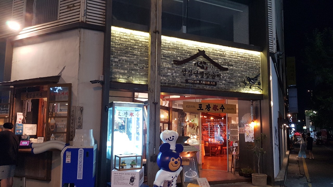 빙수를 여기서 먹을 수 있습니다. 안쪽에 테이블 자리가 4-5개 있습니다.