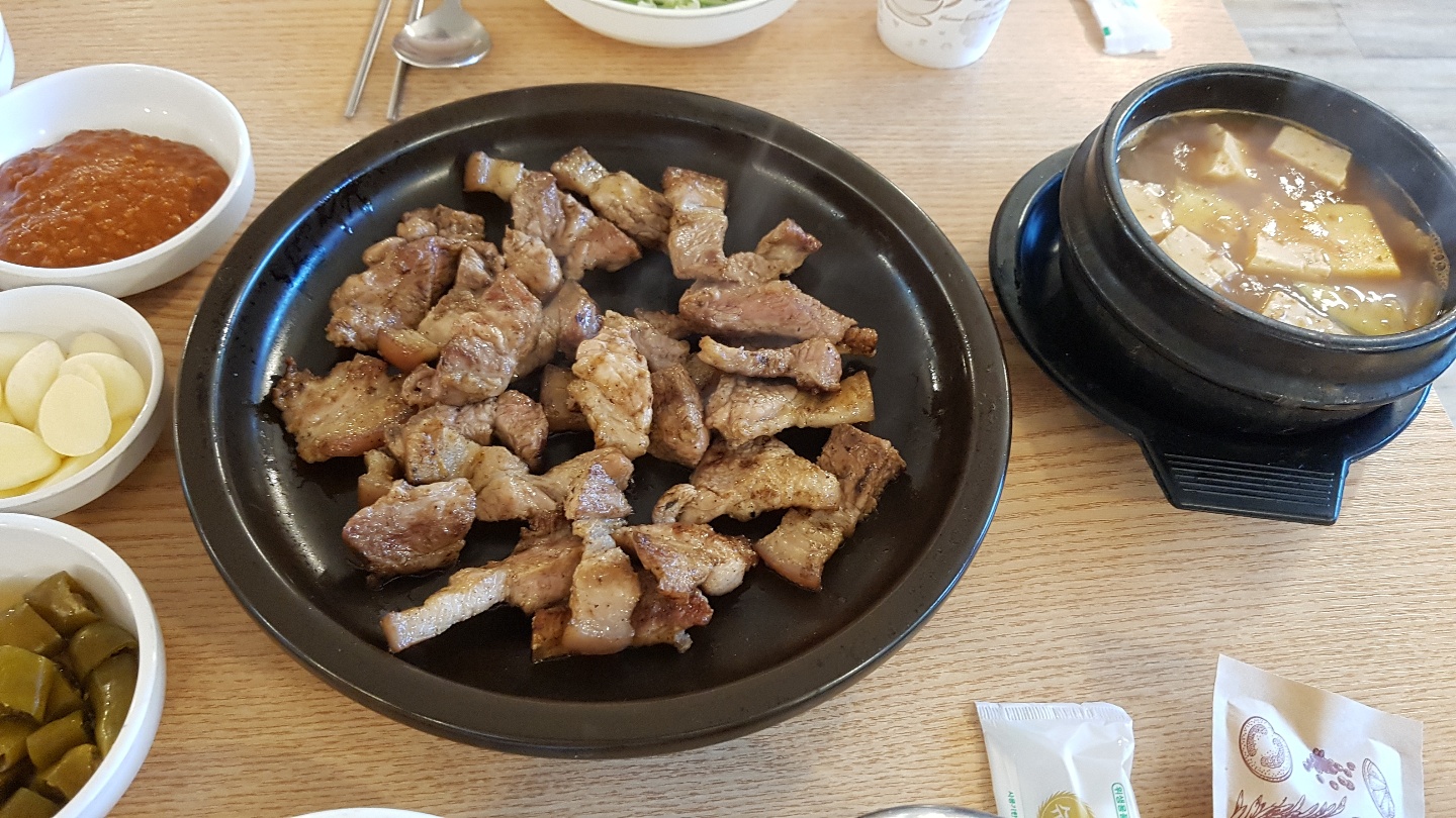 그리고 나온 오늘의 메뉴입니다. 된장은 집된장하고 거의 같습니다. 자극적이지 않았습니다.