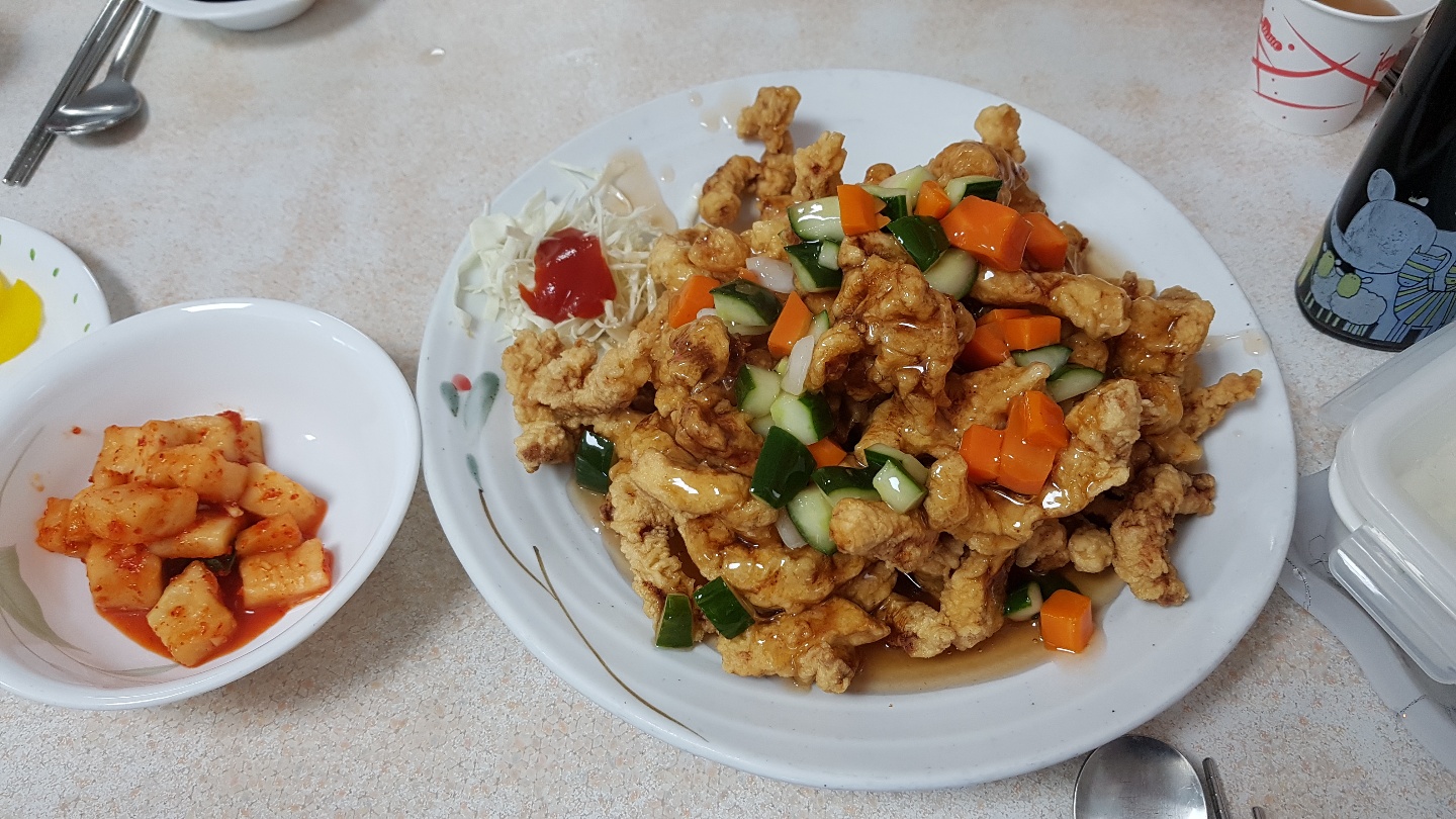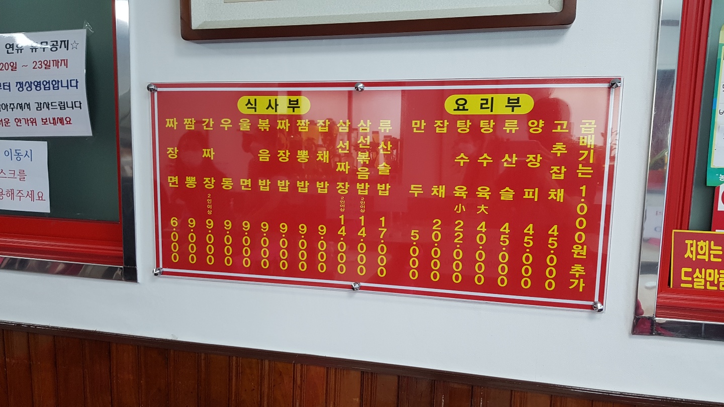 식당에 들어가서 음식을 주문해 봅니다. 우리 일행은 간짜장과 탕수육을 안시킬 수 없었습니다. 짬뽕도 주문하구요.