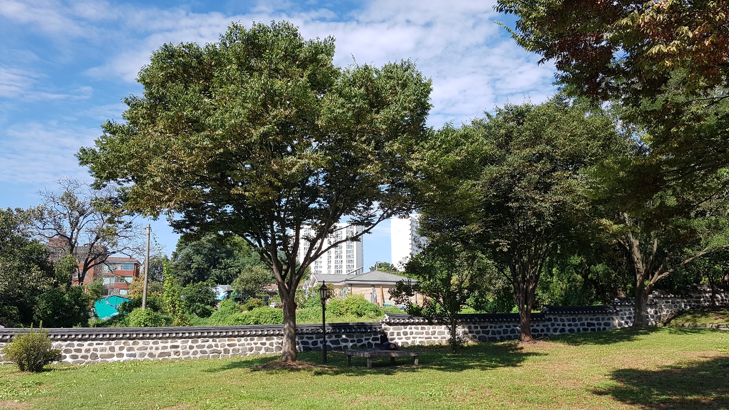 관아에 들어서니 햇빛은 다소 뜨거웠지만, 저렇게 나무밑 그늘아래에서 쉴 수 있는 공간도 있었습니다. 이미 한 자리를 차지한 어르신이 계셔서 다가갈 순 없었네요.
