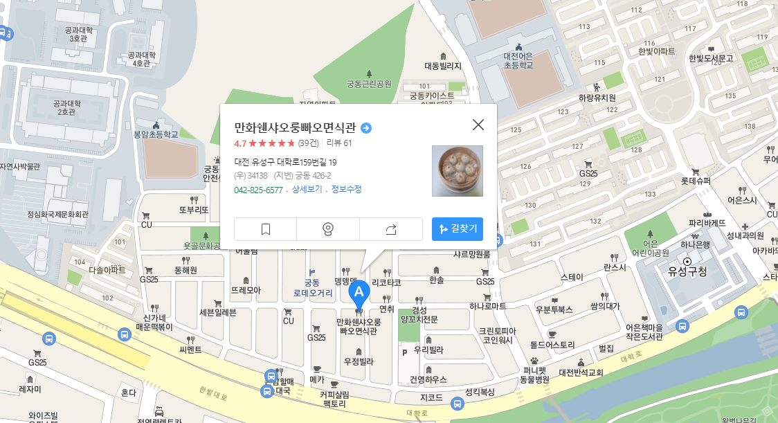 카카오맵에서도 4.7점 이상의 추천을 받은 집인데, 보통 잘 없는 일입니다. 유성구청과 충남대학교/카이스트 사이에 있습니다.