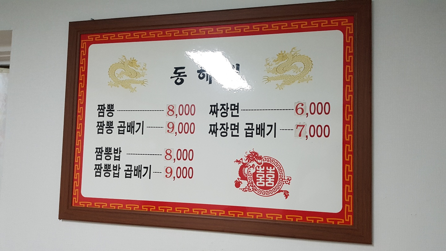 메뉴는 단촐합니다. 제 일행은 짬뽕을 주문하였고, 식사를 미처 못한 저는 짬뽕밥 곱배기를 주문하였습니다. 대전에 위치한 동해원은 탕수육이 없네요.